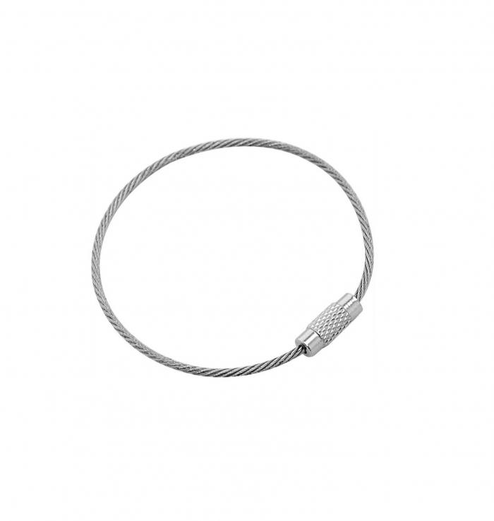 Специальное кольцо сделанное из тросика с запирающем механизмом. Отлично подходит для большой связки ключей.