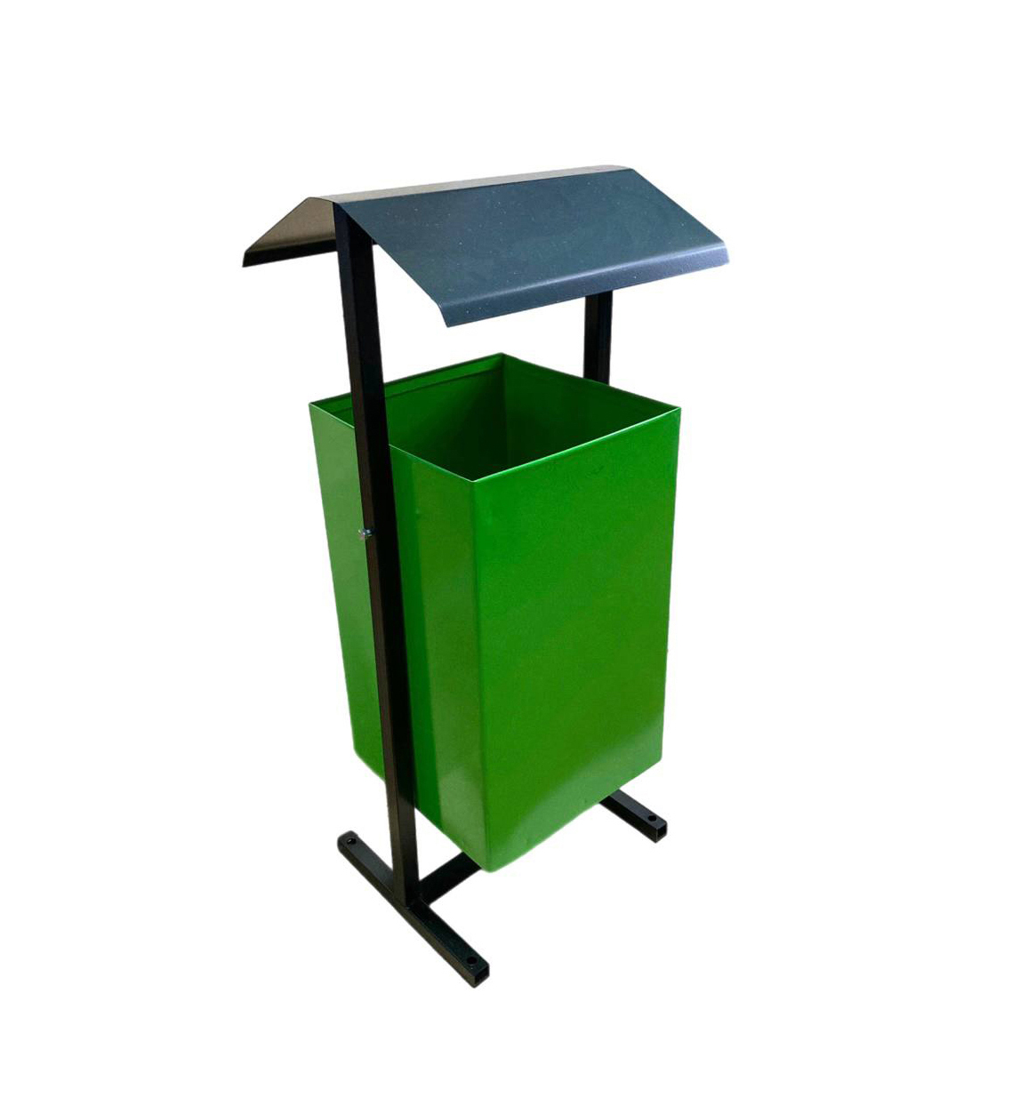 Металлическая урна, покрытая зеленой краской.